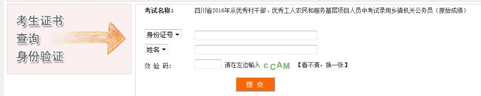 四川省2016年从优秀村干部、优秀工人农民和服务基层项目人员中考试录用乡镇机关公务员(原始成绩)
