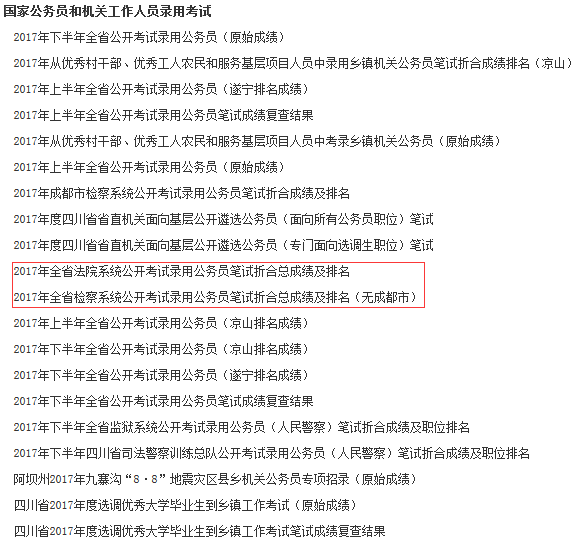 点击进入:2017年下半年四川省法检系统考试录用公务员笔试排名查询入口