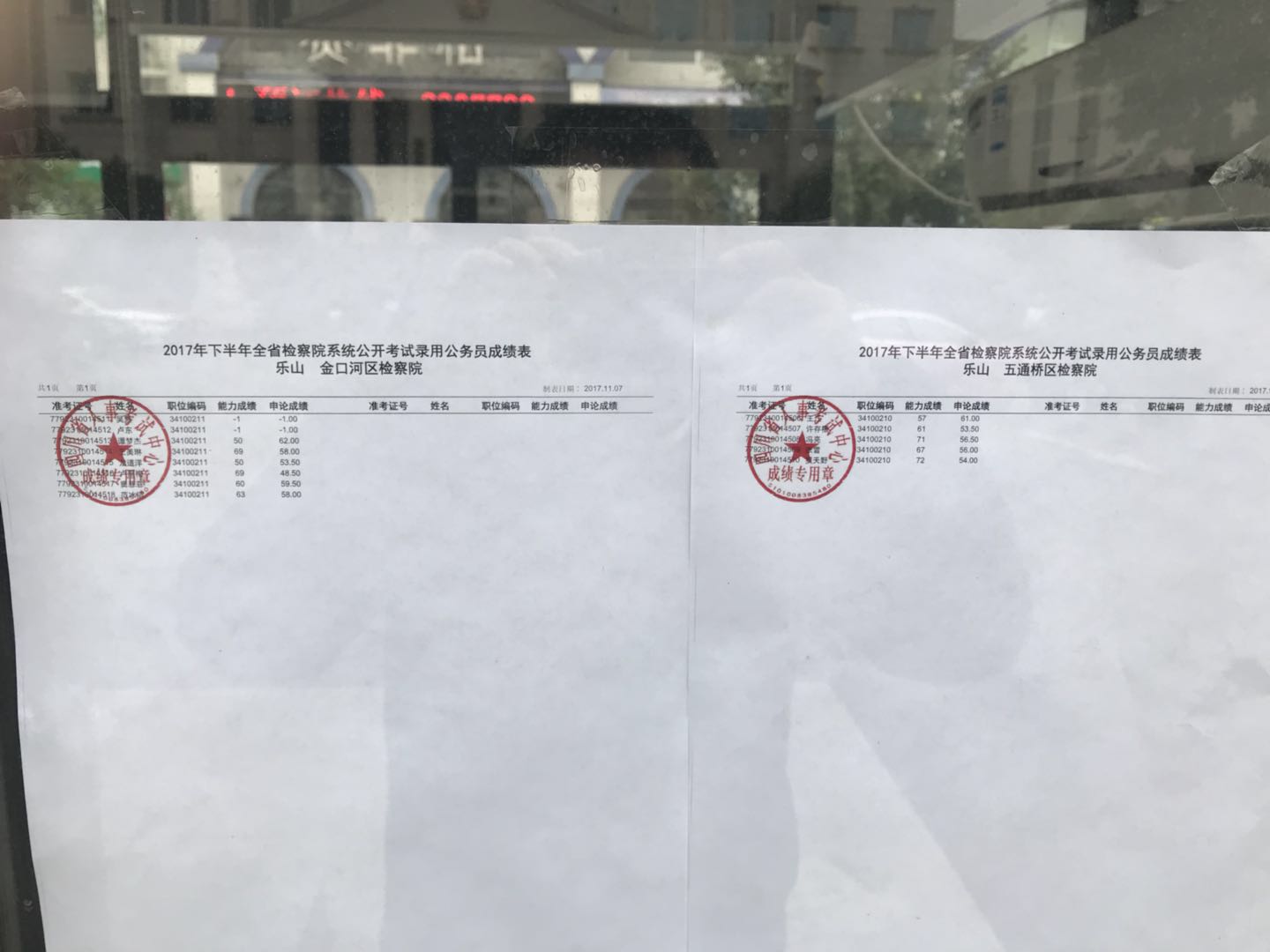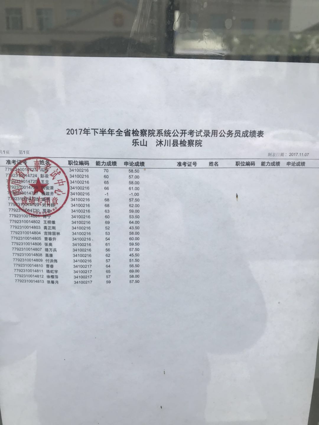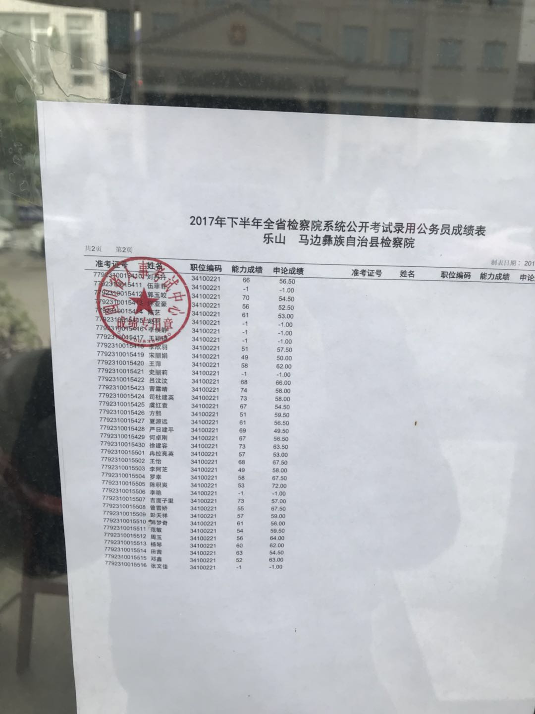 2017下半年乐山公务员考试检察院系统笔试排名表_资格复审名单