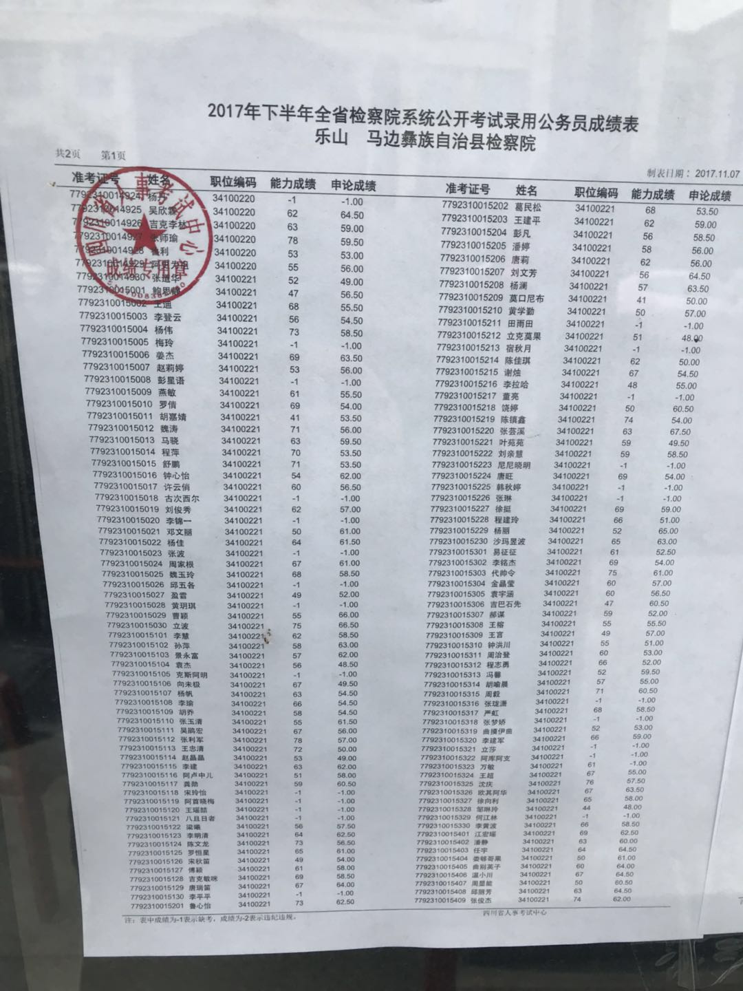 - 2017年下半年四川省法检系统考试录用公务员笔试排名查询2017.11.22